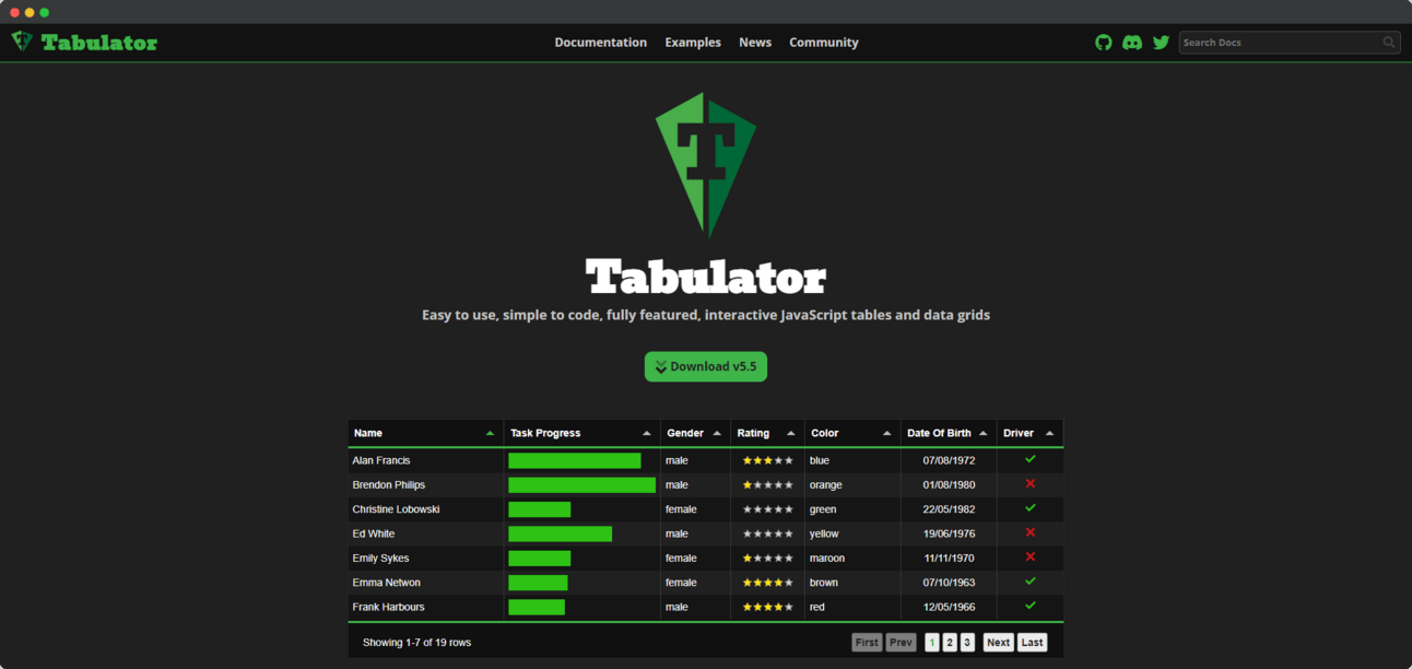 Tabulator es una librería de JavaScript para crear tablas y cuadrículas de datos interactivas.